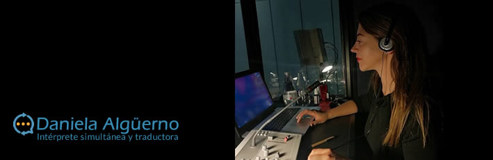 El intérprete, sentado en una cabina insonorizada con vista a la sala, escucha mediante auriculares las intervenciones de los oradores en un determinado idioma y las interpreta, en tiempo real, hacia otro idioma para la audiencia, que escucha a través de receptores.